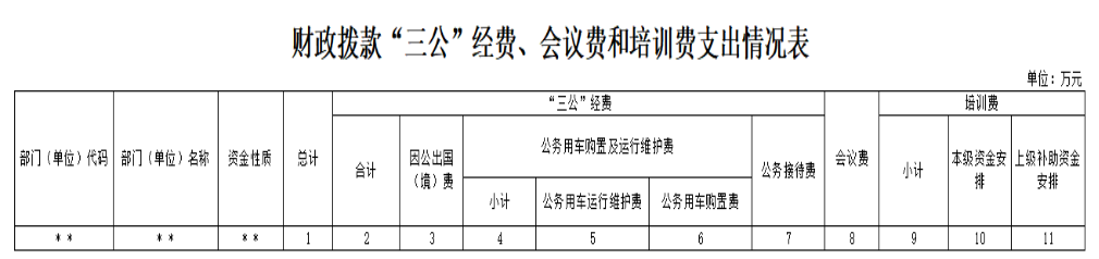 10.“三公”经费:纳入自治区财政预决算管理的“三公”经费,是指自治区本级各部门用财政拨款安排的因公出国(境)费、公务用车购置及运行费和公务接待费。其中,因公出国(境)费反映单位公务出国(境)的国际旅费、国外城市间交通费、住宿费、伙食费、培训费、公杂费等支出;公务用车购置及运行费反映单位公务用车车辆购置支出(含车辆购置税)及租用费、燃料费、维修费、过路过桥费、保险费、安全奖励费用等支出;公务接待费反映单位按规定开支的各类公务接待(含外宾接待)等支出。
