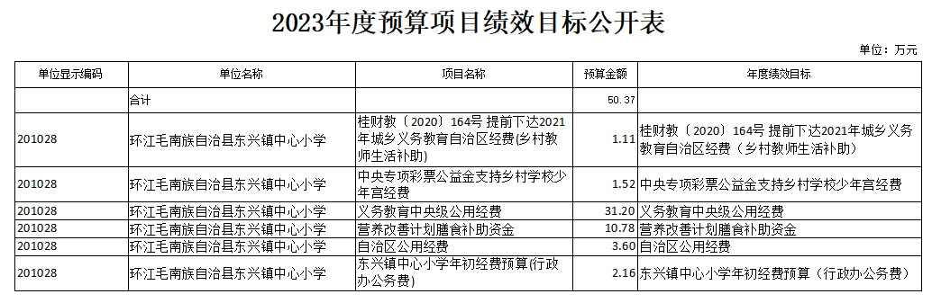 环江毛南族自治县东兴镇中心小学 2023年部门预算公开